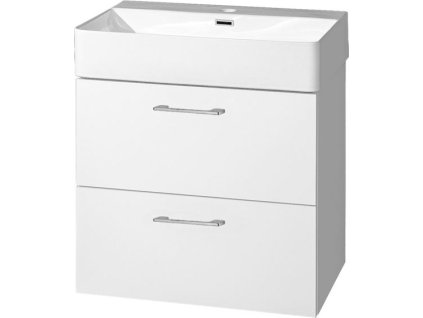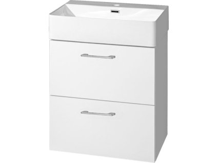 Leny, koupelnová skříňka s keramickým umyvadlem, 600x675x420 mm, spodní, bíla lesklá, 2 zásuvky.