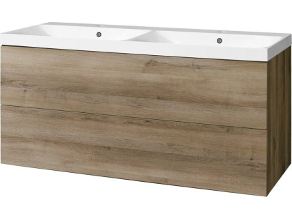 Bino, koupelnová skříňka s umyvadlem z litého mramoru, 1210x578x460 mm, spodní, dub Arlington, 2 zásuvky