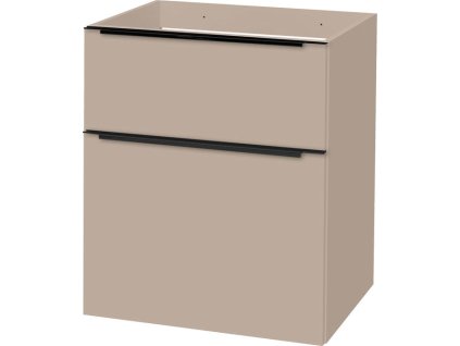 Mailo, koupelnová skříňka 605x700x476 mm, spodní, bílá mat, 2 zásuvky, černé madlo. Možno kombinovat s umyvadlem, popř. s koupelnovou deskou na skříňku.
