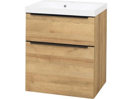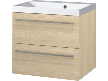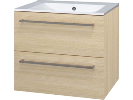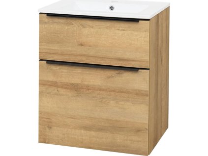Bino, koupelnová skříňka s keramickým umyvadlem, 610x548x460mm, spodní, dub Sand Barbera, 2 zásuvky