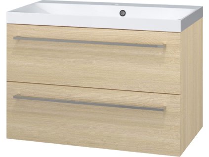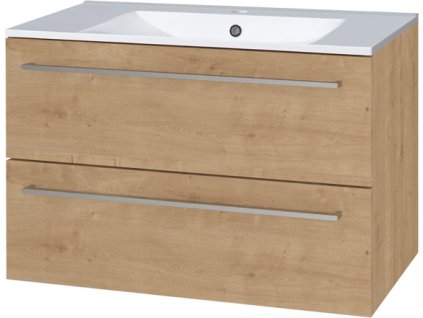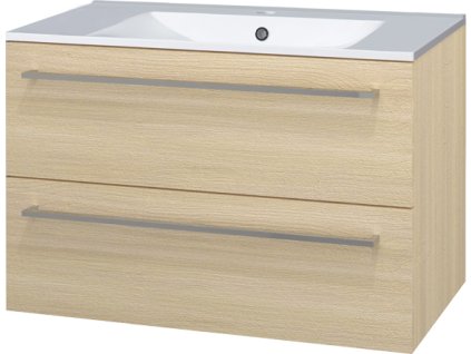 Bino, koupelnová skříňka s keramickým umyvadlem, 810x548x460mm, spodní, dub Sand Barbera, 2 zásuvky