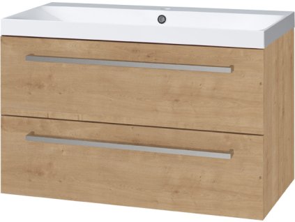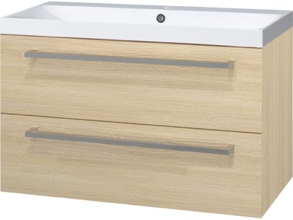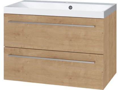 Bino, koupelnová skříňka s keramickým umyvadlem, 1010x548x460mm, spodní, dub Sand Barbera, 2 zásuvky.