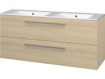 Bino, koupelnová skříňka s keramickým umyvadlem, 1210x548x460 mm, spodní, dub Sand Barbera, 2 zásuvky
