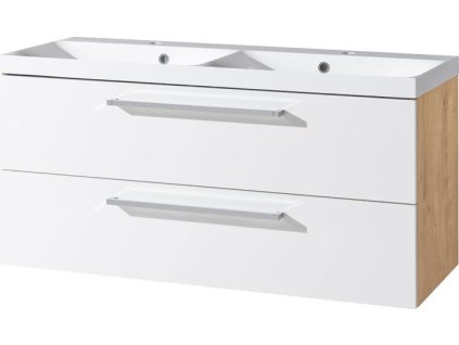 Bino, koupelnová skříňka s keramickým umyvadlem, 1210x548x460mm, spodní, bílá lesk/dub Arlington, 2 zásuvky.