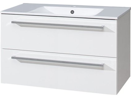 Bino, koupelnová skříňka s keramickým umyvadlem, 1010x548x460mm, spodní, bílá lesk, 2 zásuvky.