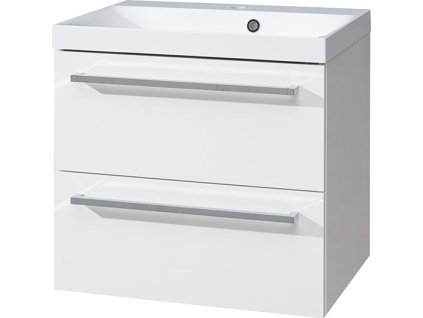 Bino, koupelnová skříňka s keramickým umyvadlem, 610x548x460mm, spodní, bílá lesk, 2 zásuvky.