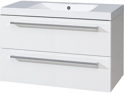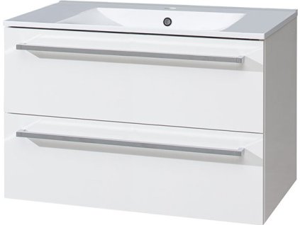 Bino, koupelnová skříňka s keramickým umyvadlem, 810x548x460mm, spodní, bílá lesk, 2 zásuvky.