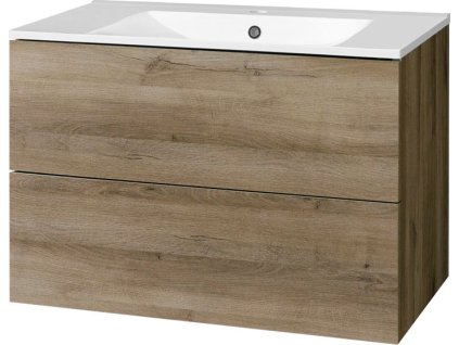 Aira, koupelnová skříňka s keramickým umyvadlem 810x548x465 mm, spodní, dub Halifax, 2 zásuvky, push-open systém a pomalé dovírání.