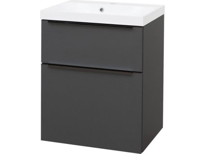 Mailo, koupelnová skříňka s keramickým umyvadlem, 610x720x476 mm, spodní, antracit, 2 zásuvky, černé madlo.