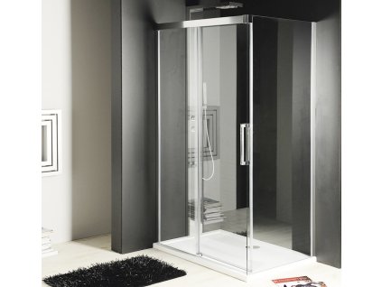 Pevný díl s profilem a těsněním pro CK80443K, 150x190 cm, sklo čiré, chrom ALU