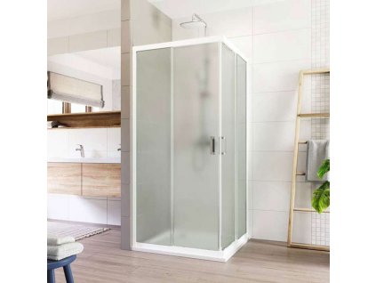 Hliníkové profily v barvě bílé, dveře posuvné, sklo Point, síla skla 6 mm, čtverec, rozměr 900 x 900 mm, výška 1900 mm.
