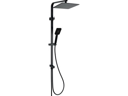 Sprchový set s nastavitelnou tyčí, nerezovou sprchovou hadicí 155cm, propojovací hadicí 55 cm, ruční a talířovou hranatou sprchou, 300x190 mm, černá