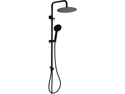 Sprchový set s nastavitelnou tyčí, nerezovou sprchovou hadicí 150 cm, propojovací hadicí 55 cm, ruční a talířovou kulatou sprchou, ø 250 mm, černá