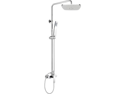 Sprchový set Quatro s nastavitelnou tyčí, sprchovou hadicí 150 cm, propojovací hadicí 55 cm, ruční a talířovou hranatou sprchou, 200x200 mm, nerez