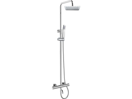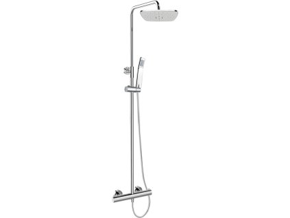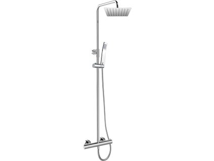 Termostatická nástěnná sprchová baterie 150 mm, s nastavitelnou teleskopickou tyčí, nerezovou sprchovou hadicí 150 cm, ruční a talířovou hranatou sprchou, 220x220 mm, nerez